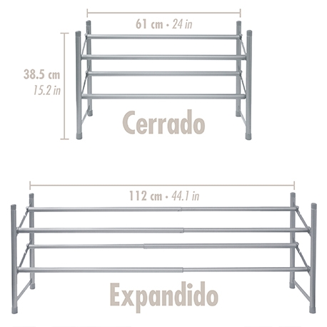 El Zapatero de piso expandible de 2 niveles de Rejiplas es la solución perfecta para mantener tus zapatos organizados y aprovechar al máximo esos espacios vacíos en tu clóset, vestier, zona de ropas o entrada del hogar. Su diseño ajustable permite expandirlo fácilmente desde 61 cm hasta 112 cm de ancho, adaptándose a tus necesidades y al espacio disponible.