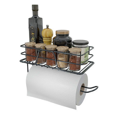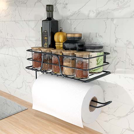 El Portarrollo con canasta de Rejiplas, es un práctico organizador que combina funcionalidad y estilo. Su diseño permite mantener a la mano los condimentos, frascos o botellas de uso frecuente, mientras que el soporte inferior sostiene el rollo de cocina, optimizando el espacio.