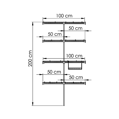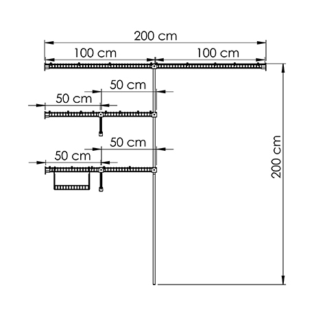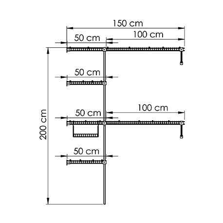 | Componentes | 2 Entrepaños Ganaespacio® 100x40 cm con colgadero| 4 Entrepaños Ganaespacio® 50x40 cm| 1 Canasta colgante de 31 cm de frente - 28 cm de fondo - 20 cm de alto| 2 Parales de 100 cm| 6 soportes laterales| Ver datos adicionales |
