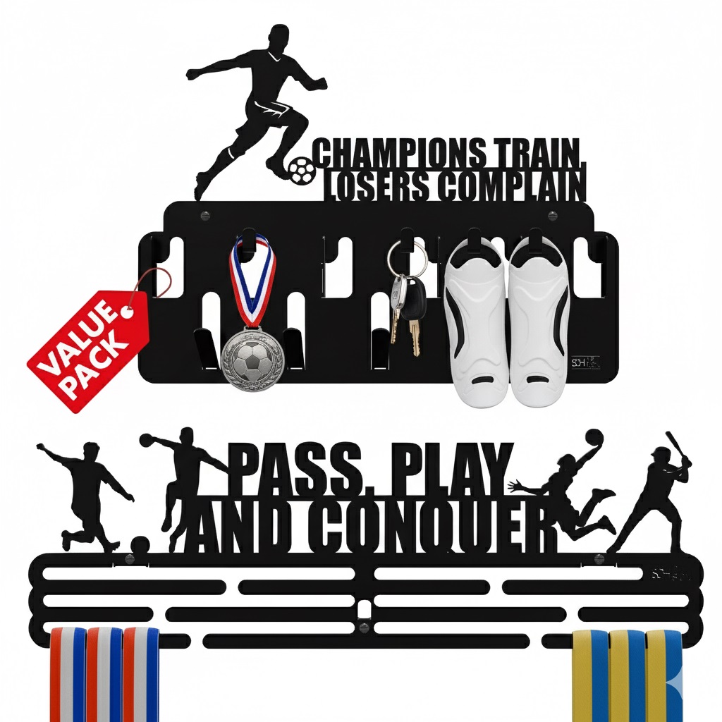 Juego de 2 Soportes para Medallas y Accesorios SOH DESIGN – ¡Exhibe Tu Éxito con Orgullo! Convierte tus logros deportivos en una auténtica obra de arte con los Soportes para Medallas y Accesorios SOH DESIGN. Diseñados para destacar en cualquier espacio, estos estantes de acero premium son ideales para jugadores de fútbol, corredores, gimnastas, ciclistas, atletas de baloncesto y todo tipo de campeones que deseen exhibir sus medallas, cintas y premios con estilo y orden.