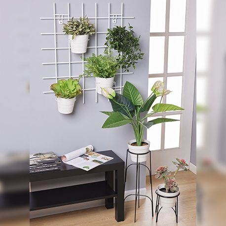 | Componentes | 1 Soporte piso arco bajo, 1 matera en plástico blanca |
