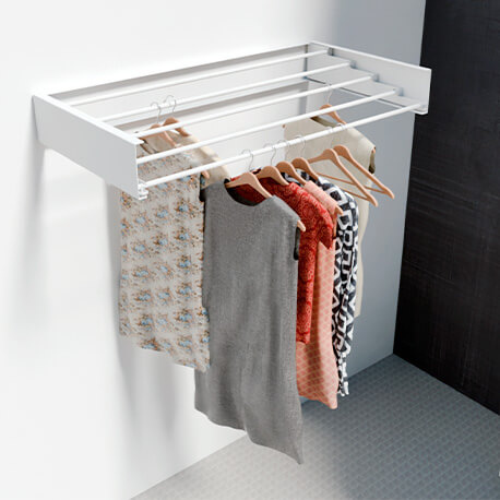 Cuando no está en uso, se pliega fácilmente, ocupando el mínimo espacio y manteniendo la zona de ropas organizada y libre de obstáculos. Perfecto para lavanderías, balcones o espacios pequeños, este tendedero ofrece capacidad de carga hasta de 10 kg, garantizando eficiencia y comodidad.